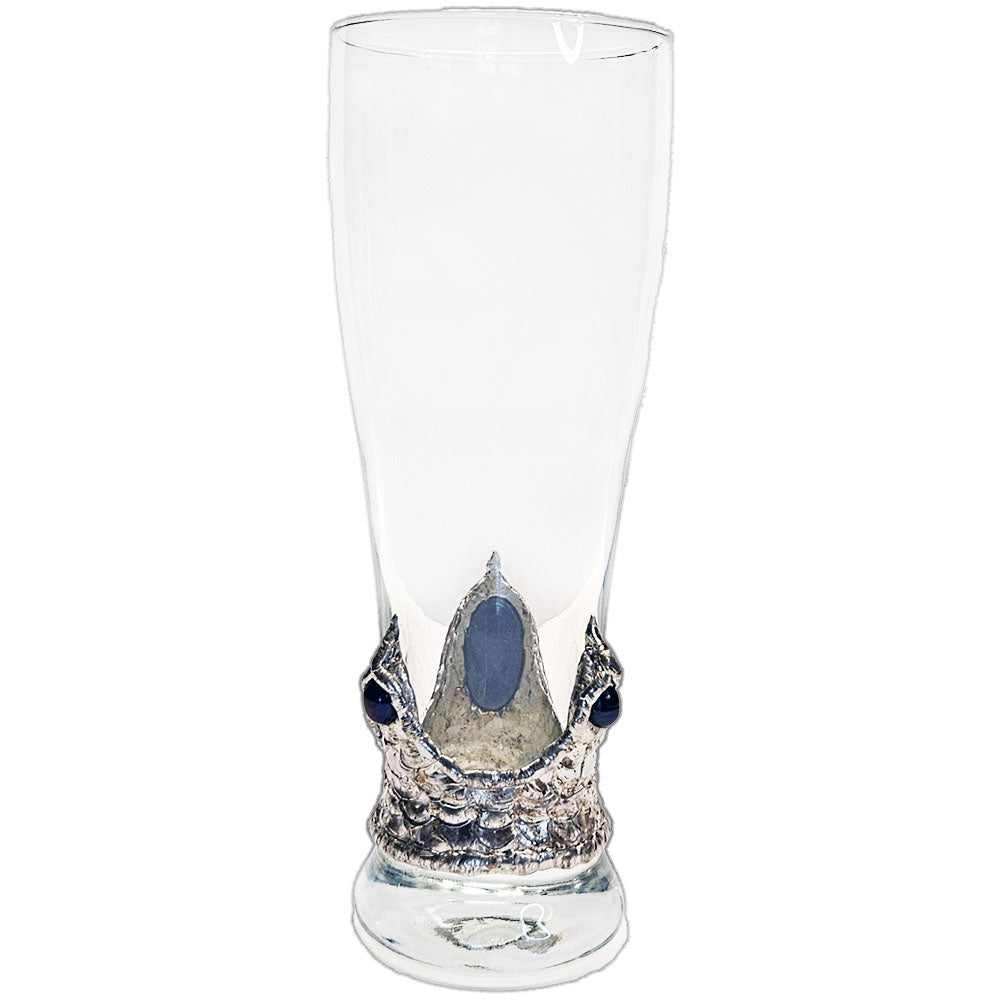 This pilsner glass is crafted with understated elegance. At its center rests a blue opaque opal cabochon, offering a clean, dark sky blue focal point. Adorned with two black pearls, smooth and refined, adding bold contrast and balance to the design.